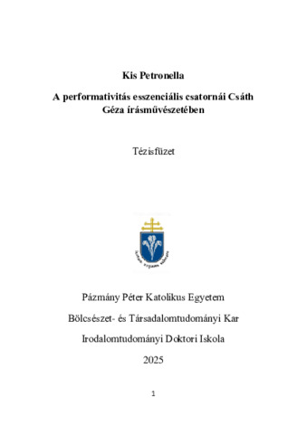 A performativitás esszenciális csatornái Csáth Géza írásművészetében