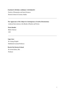 A szubjektum megjelenése a kortárs (kreatív) dokumentumfilmben