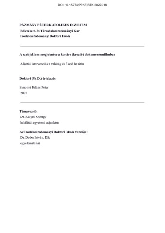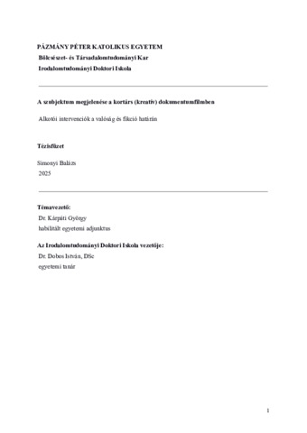 | Alcím: | Alkotói intervenciók a valóság és fikció határán | ||||||