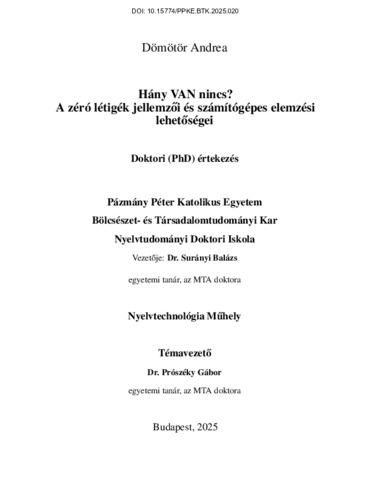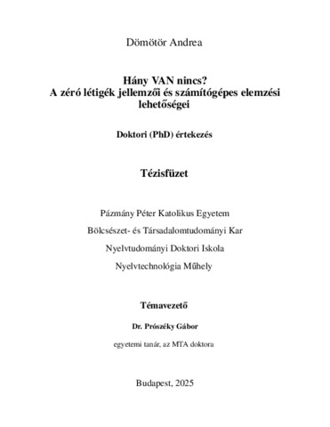 Hány VAN nincs? : A zéró létigék jellemzői és számítógépes elemzési lehetőségei