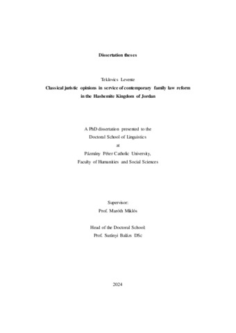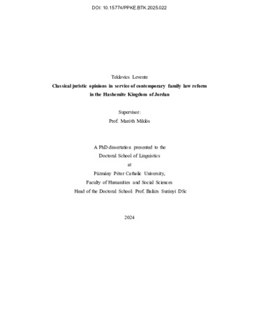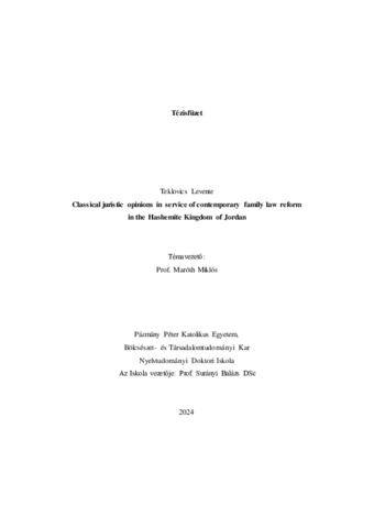 Classical juristic opinions in service of contemporary family law reform in the Hashemite Kingdom of Jordan