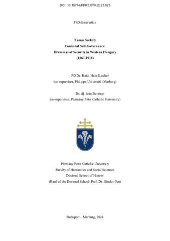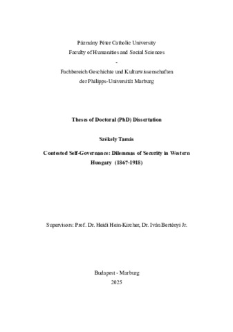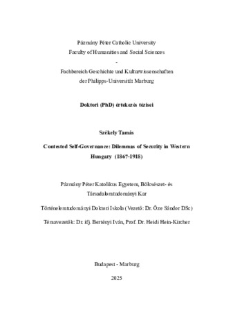 Contested Self-Governance : Dilemmas of Security in Western Hungary (1867-1918)
