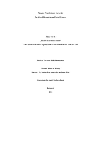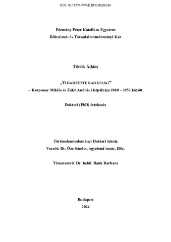 „VIHARTÉPTE BARÁTSÁG” : Korponay Miklós és Zákó András életpályája 1940 – 1951 között.