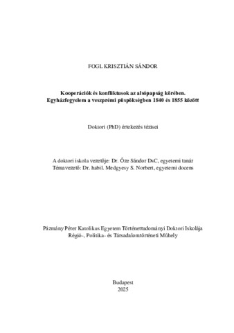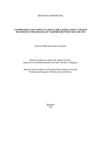 Kooperációk és konfliktusok az alsópapság körében : Egyházfegyelem a veszprémi püspökségben 1840 és 1855 között