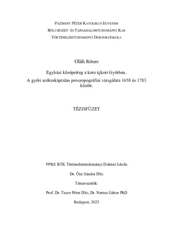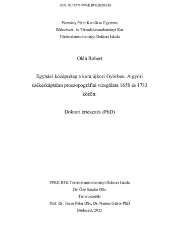 Egyházi középréteg a kora újkori Győrben. A győri székeskáptalan proszopográfiai vizsgálata 1658 és 1783 között
