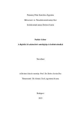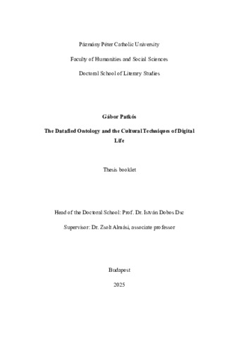| A mű párhuzamos címe: | A digitális lét adatosított ontológiája és kultúrtechnikái | ||||||
