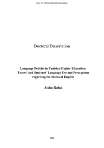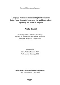 | A mű párhuzamos címe: | A tunéziai felsőoktatás nyelvpolitikája: a nyelvhasználat a tanárok és a hallgatók körében, valamint véleményük az angol nyelv státuszáról | |||||||||