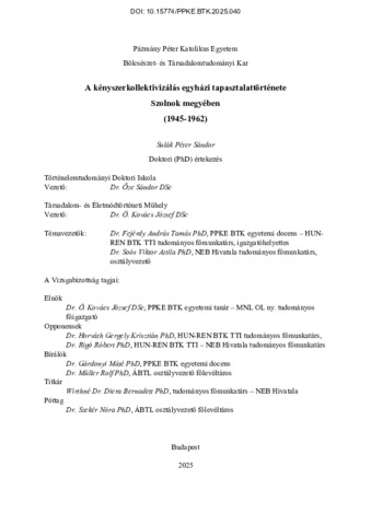 A kényszerkollektivizálás egyházi tapasztalattörténete Szolnok megyében (1945-1962)