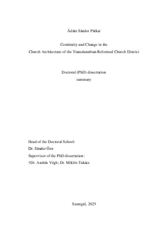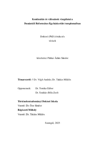 Kontinuitás és változások vizsgálatai a Dunántúli Református Egyházkerület templomaiban
